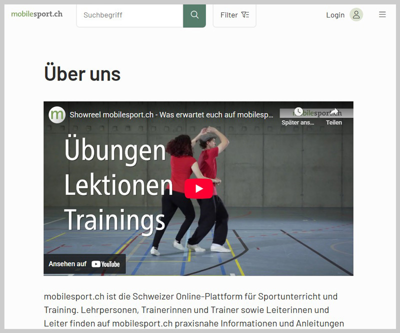mobilesport ist die Schweizer Online-Plattform für Sportunterricht und Training. Lehrpersonen, Trainer/-innen sowie Leiter/-innen finden praxisnahe Informationen und Anleitungen für ihre tägliche Arbeit. Elemente wie Merkliste und Newsletter ergänzen die Dienstleistungen des Bundesamts für Sport BASPO.Jugend & Sport - das grösste Sportförderprogramm des Bundes