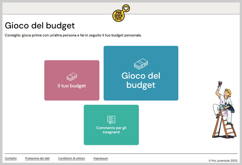 Il gioco permette ai giovani di confrontarsi con temi come il salario di apprendista, l’allestimento di un budget e le nuove responsabilità legate all’avere un proprio salario. Gli insegnanti possono ordinare gratuitamente il gioco del budget per le loro lezioni.aggiornato il 29.12.2020