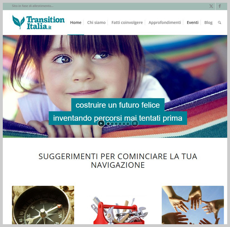 Il movimento della Transizione in Italia nasce nel 2008 per facilitare e supportare la diffusione di questo entusiasmante processo collettivo sul territorio italiano. Riunisce coloro che intendono considerare, adottare, adattare e implementare il modello della Transizione all’interno della propria comunità. Esiste anche in Svizzera (attualmente solo in tedesco).Swiss Faire Trade (portale web)