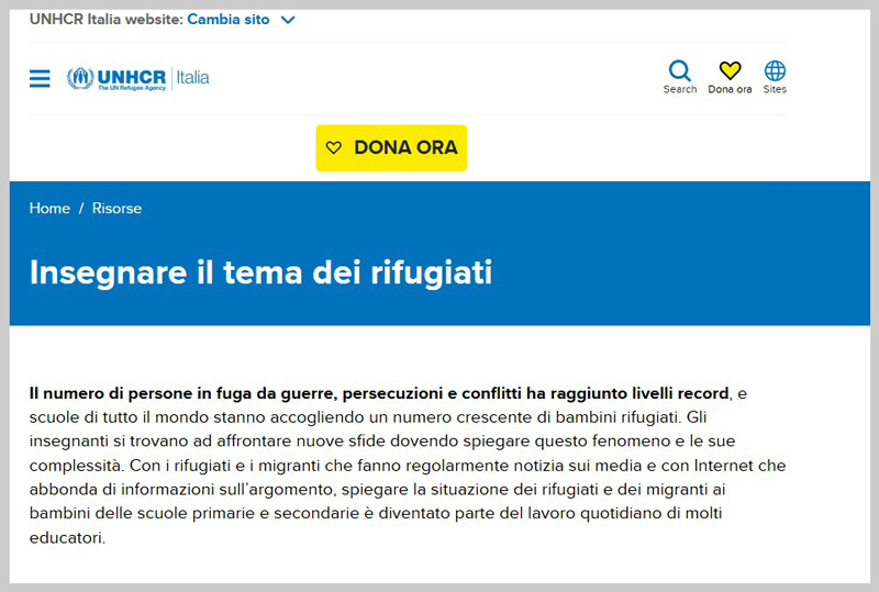 "Regole in guerra" si occupa di guerra, fuga e migrazione, nonché delle regole del diritto internazionale umanitario. Giochi, esercizi e lavoro di gruppo aiutano gli studenti ad acquisire conoscenze sui motivi della fuga, sulle regioni di conflitto e sul diritto umanitario internazionale, ad abbattere i pregiudizi nei confronti dei rifugiati e a sviluppare l'empatia. Vi è pure un sito sulla gestione dei conflitti.Sotto il velo: la mia vita con il velo per le strade di Roma