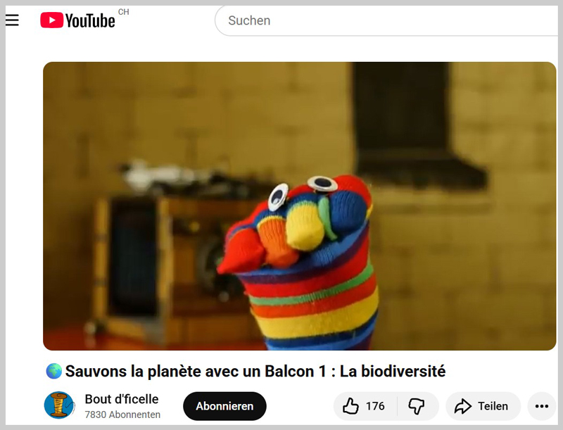 Une chaine YouTube pour comprendre les sciences en expérimentant et jouant. Quelques épisodes du domaine « Sciences en vrac » concernent des actions à faire pour la biodiversité près de chez soi dans la série «Sauvons la planète avec un balcon» :
