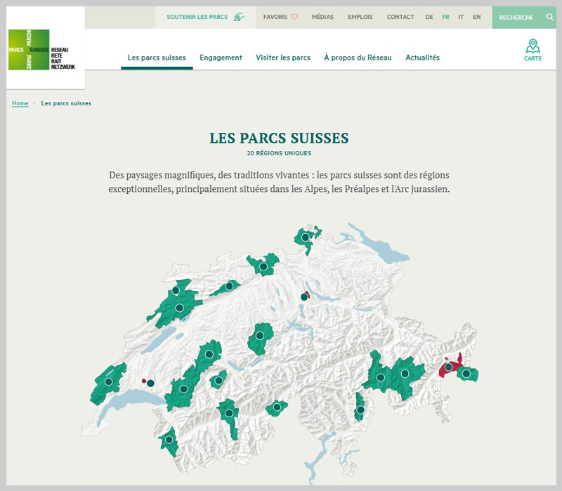 Les parcs suisses ont des objectifs et des responsabilités clairs. Ils sensibilisent habitants et visiteurs aux richesses écologiques, culturelles, historiques et économiques de leur région et valorisent ces dernières. Plusieurs proposent des activités sur la biodiversité (taper biodiversité dans chercher).RTS Découverte : la biodiversité / cycles 1, 2, 3, sec II