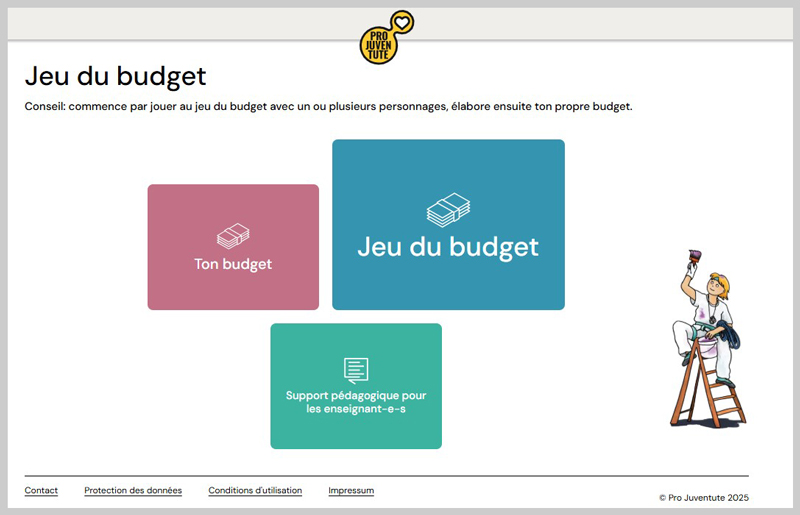 Avec le «Jeu du budget» conçu par Pro Juventute, les jeunes du niveau secondaire I (cycle 3) s’intéressent de plus près au salaire d’apprenti, à l’établissement d’un budget et à leurs nouvelles responsabilités. Ils explorent les différents frais courants, font des recherches sur des thèmes comme les impôts ou l’assurance maladie et apprennent à bien répartir un salaire d’apprenti.