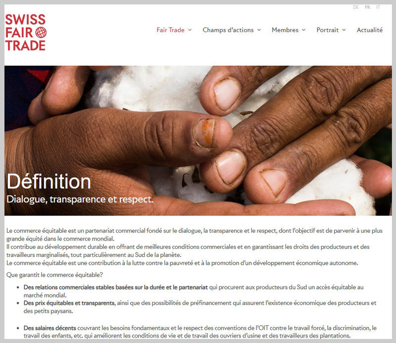 Le site internet de Swiss Fair Trade propose des définitions du commerce équitable et de notions apparentées ainsi qu'un graphique des chiffres d'affaires du commerce équitable en Suisse, et traite des garanties et des effets du commerce équitable. A découvrir aussi les trois dimensions du commerce équitable.Le « Jeu du budget »