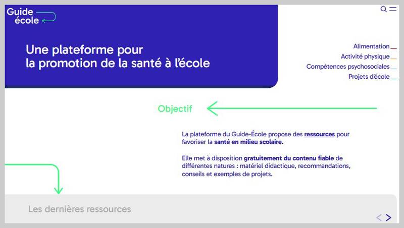 Cette plateforme propose des informations, conseils et recommandations sur les thèmes de l'alimentation, l'activité physique et l'image corporelle positive. Elle met également à disposition des écoles des exemples de projets réalisés par des établissements/classes.Jeunesse et Sport - (tous les cycles)