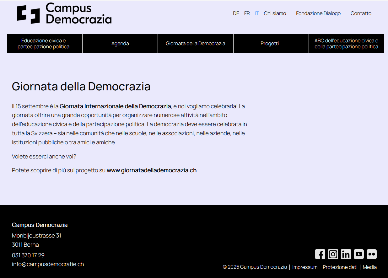 Democrazia significa molto più che andare semplicemente a votare. La democrazia comprende valori, principi, istituzioni e processi sociali fondamentali che caratterizzano e determinano la nostra convivenza. In quanto cittadine e cittadini, siamo chiamati a riflettere costantemente su questi aspetti, a rinegoziarli e a viverli anche nella quotidianità. Un punto è quindi chiaro: la democrazia non è un sistema politico scontato, perché richiede impegno, consapevolezza, competenze e una società disposta a contribuire attivamente alla costruzione del futuro.