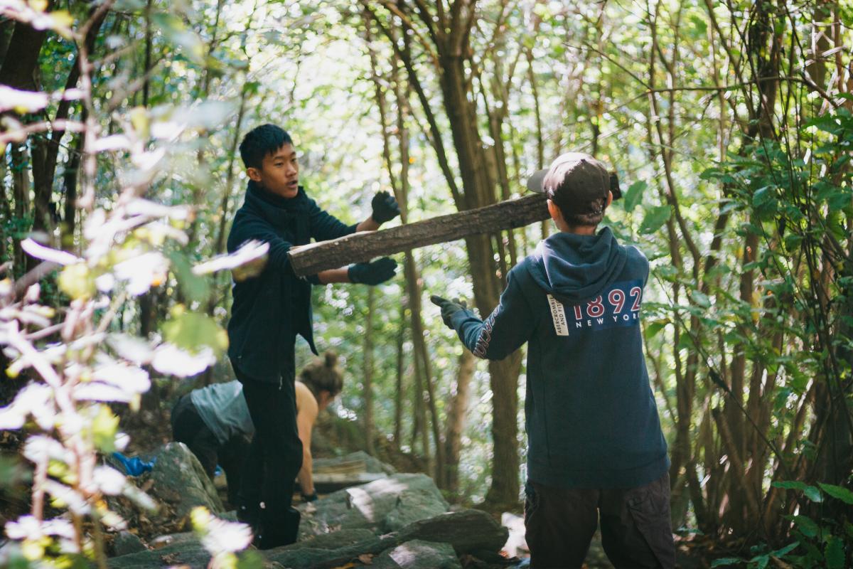 Im Bergwald unter Anleitung von Fachkräften verschiedene sinnstiftende Arbeiten ausführen